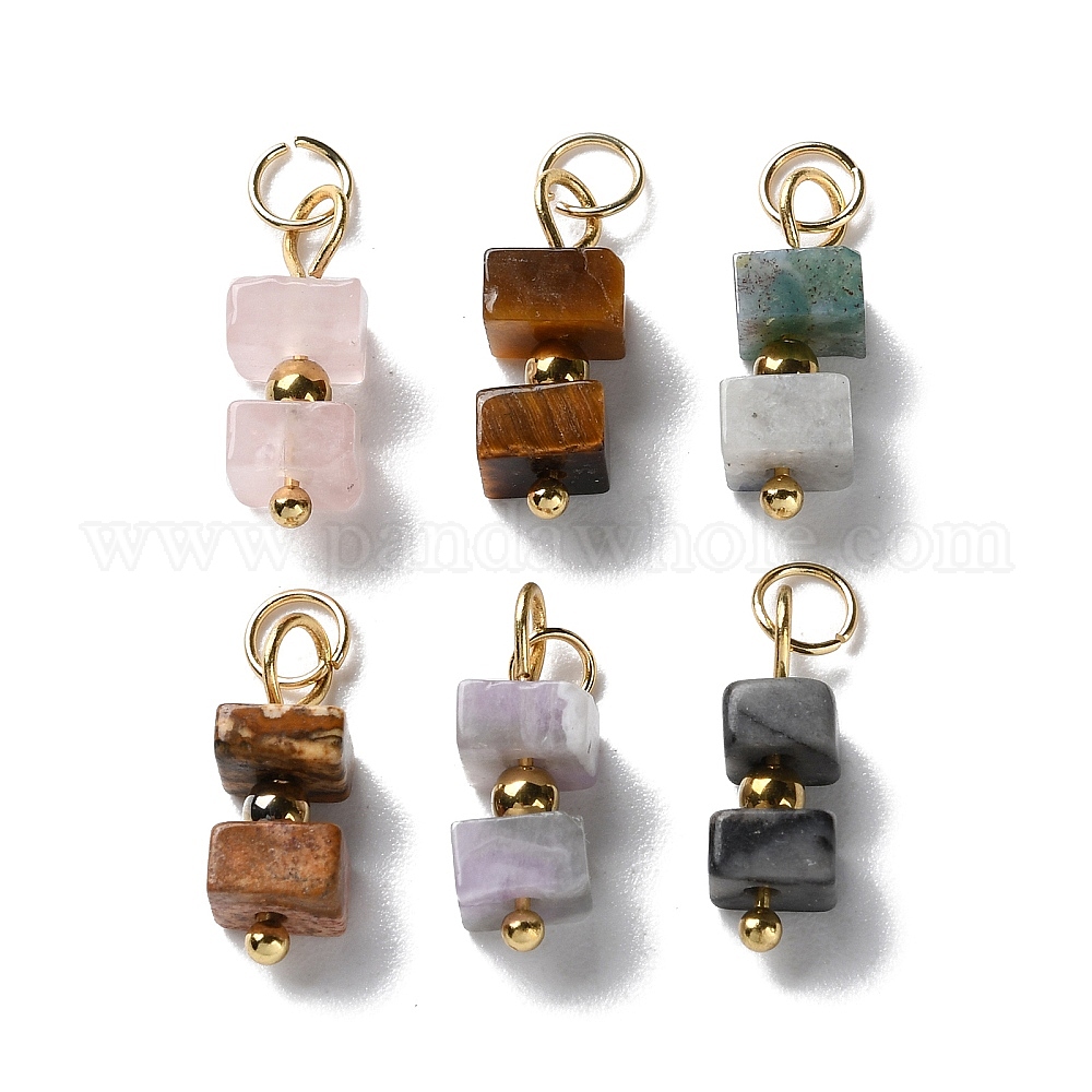 Подвески из натурального драгоценного камня в форме куба с бусинами, с 304 петлями из нержавеющей стали, золотые