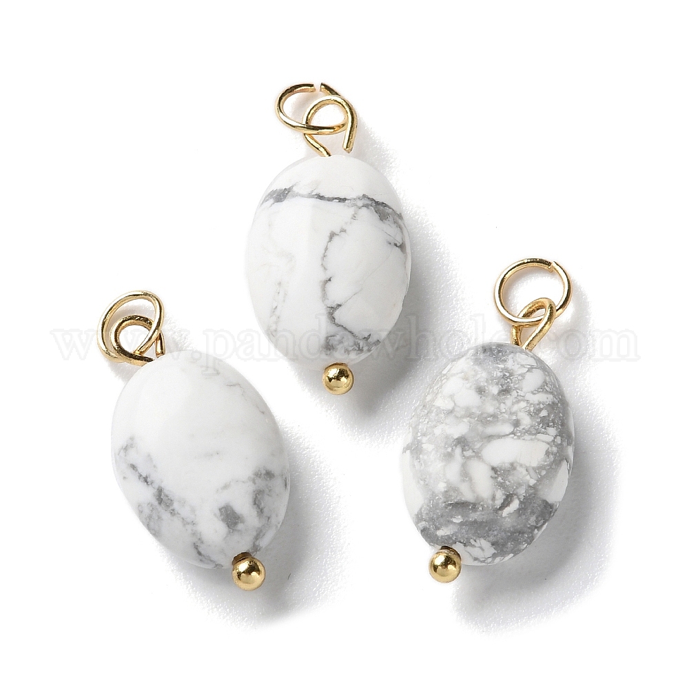 Природные подвески Говлит, Овальные подвески с 304 соединительными кольцами из нержавеющей стали, золотые