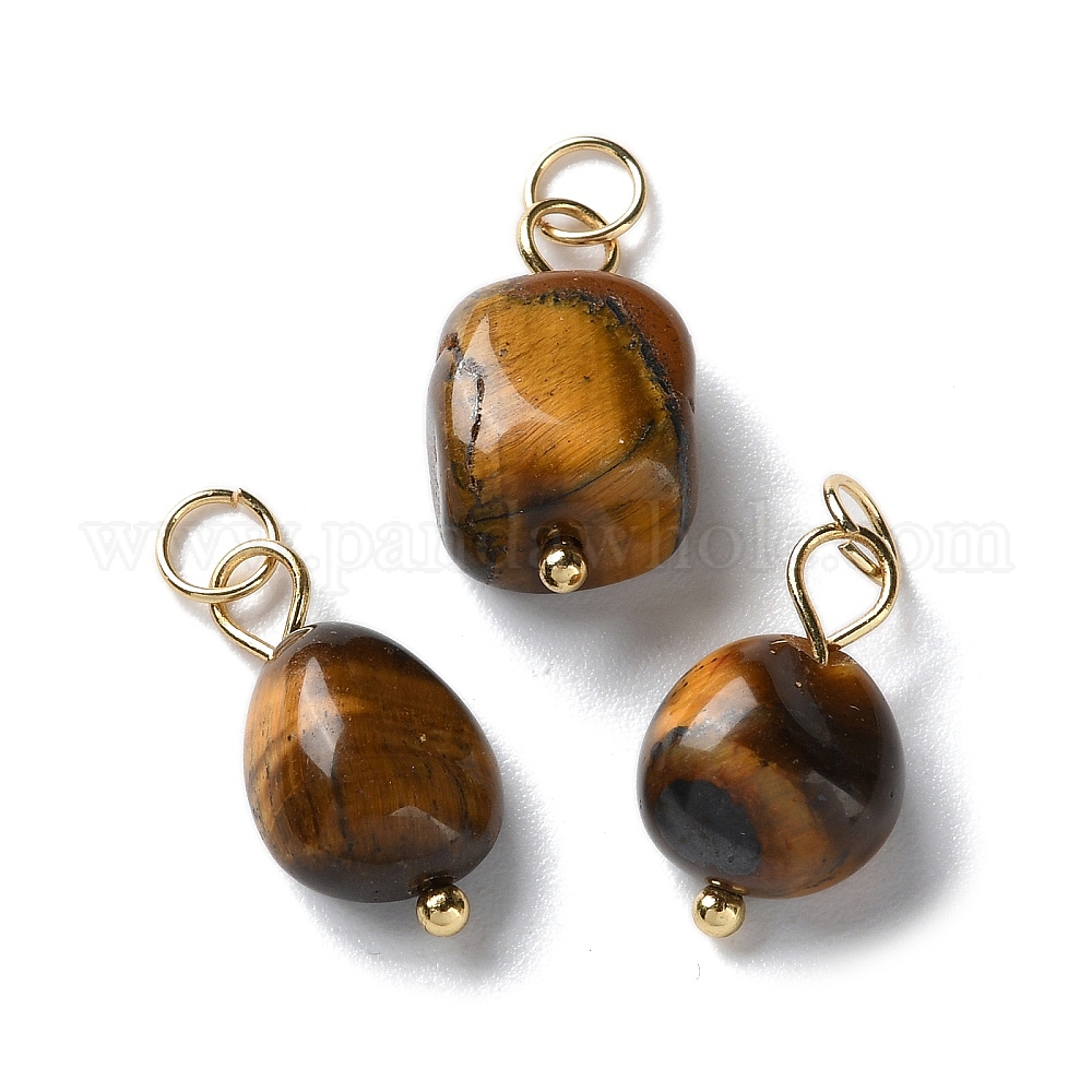 Природных тигровый глаз подвески, Подвески-наггетсы с 304 кольцами из нержавеющей стали, золотые