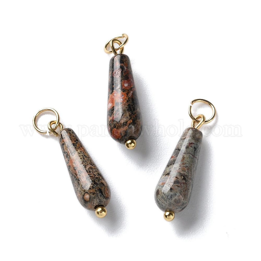 Натуральные шкуры яшмы из леопарда, подвески-слезинки с 304 соединительными кольцами из нержавеющей стали, золотые (03275A)
