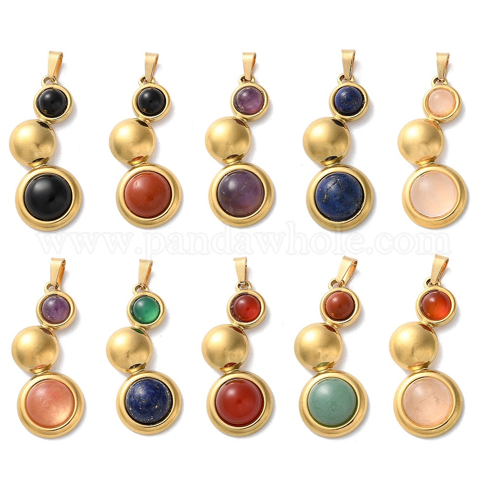 Драгоценный камень подвески, 304 из нержавеющей стали плоские круглые прелести, ионное покрытие (ip), золотые