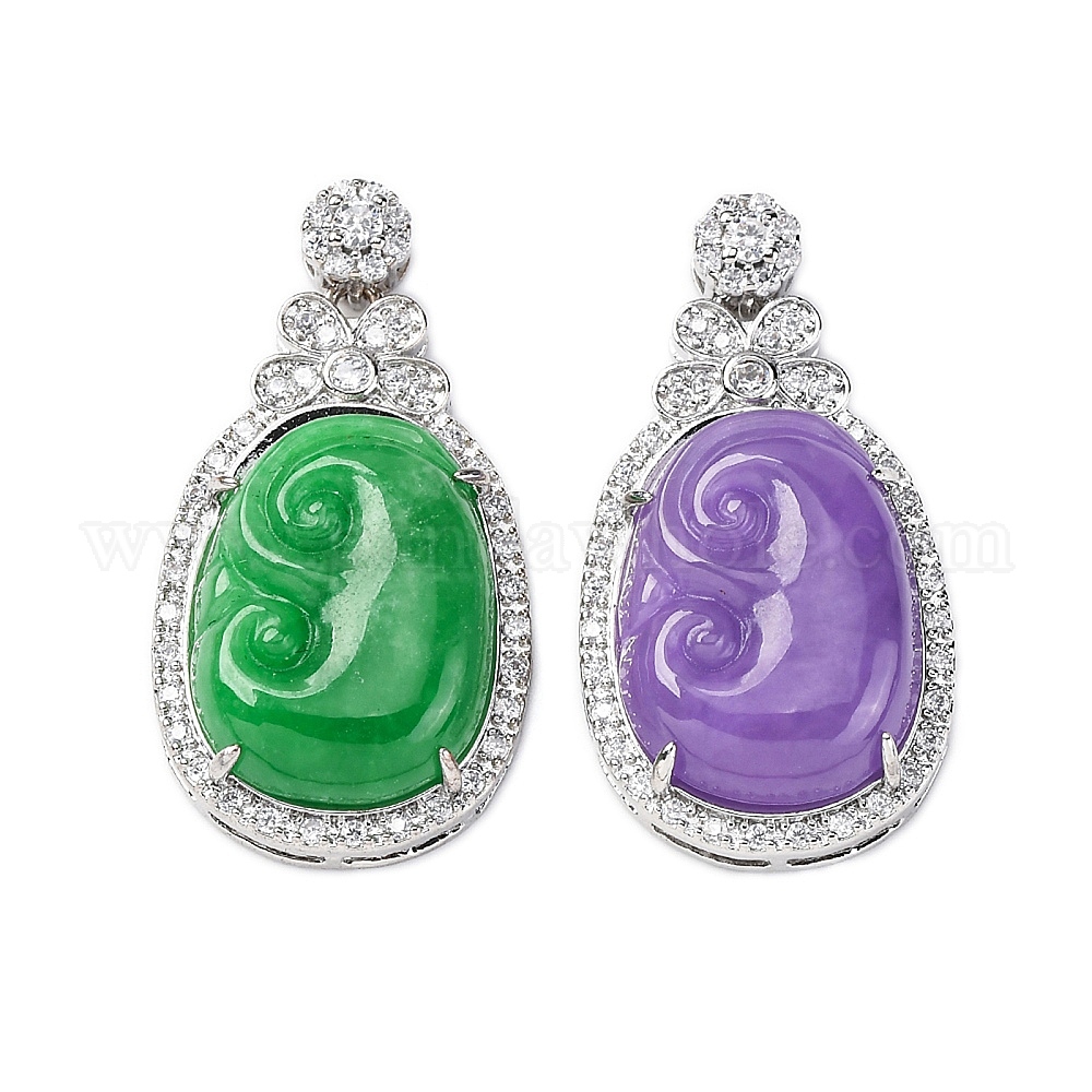 Окрашенный натуральный бирманский нефрит руйи подвески, латунные прозрачные кубические циркониевые драгоценные камни подвески, платина