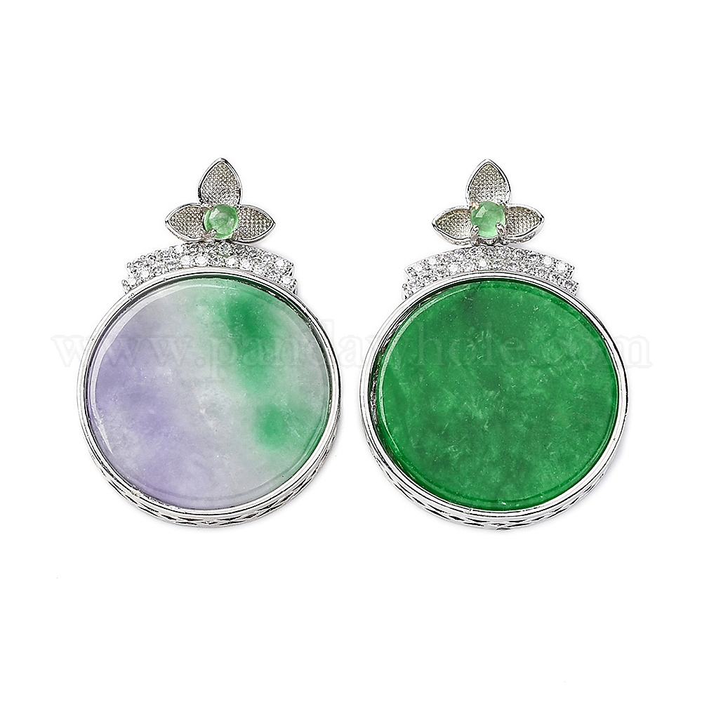 Окрашенный натуральный бирманский нефрит цветы плоские круглые подвески, латунные прозрачные кубические циркониевые драгоценные камни подвески, платина