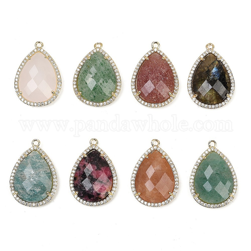 Подвески с ограненными драгоценными камнями, стойка покрытие латунь микропаве прозрачный кубический цирконий каплевидные подвески, золотые