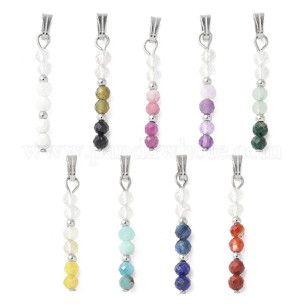 Граненые круглые подвески из натуральных драгоценных камней, с 304 фурнитурой из нержавеющей стали, цвет нержавеющей стали