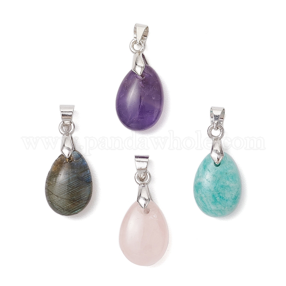 • Смешанные камни 4 шт. 4 стили натуральный лабрадорит и амазонит и розовый кварц и аметист подвески-слезинки, с латунной поручительств, платина, 14x10x5.5 мм, отверстие : 4.5x4 мм, 1 шт / стиль