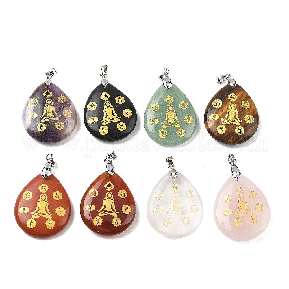 Природных драгоценных камней подвески, с реечной обшивкой латунными выводами, без кадмия и без свинца, подвеска в виде слезы и чакры йоги