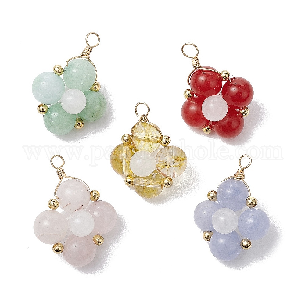 • (52) Непрозрачная лаванда Подвески из натурального малайзийского нефрита, кварца, кварцевого кристалла и розового кварца в виде клевера, амулеты из медной проволоки, реальный 18 k позолоченный, смешанные окрашенные и неокрашенные, разноцветные, 25x20.5x15 мм, отверстие : 3 мм