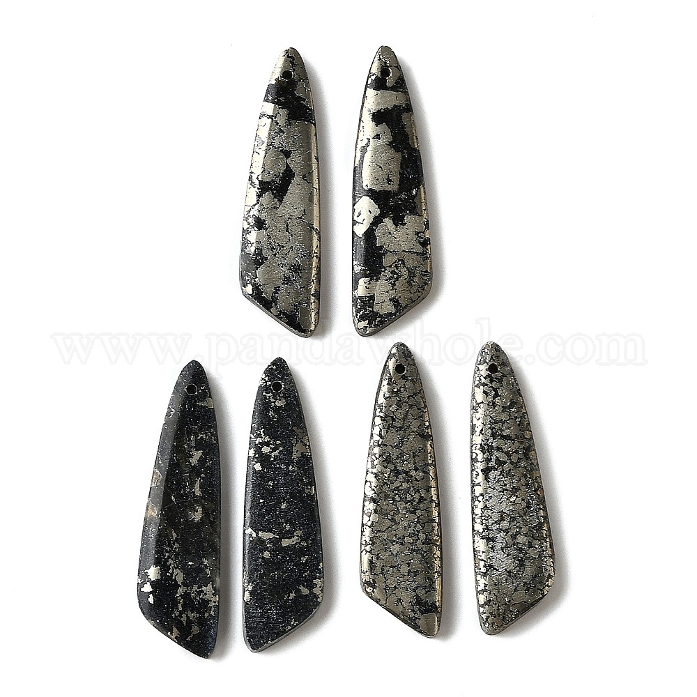 • Пирит Натуральный пирит подвески, крылатые прелести, 37.5~39x10~10.5x3.5~4 мм, отверстие : 0.9~1 мм