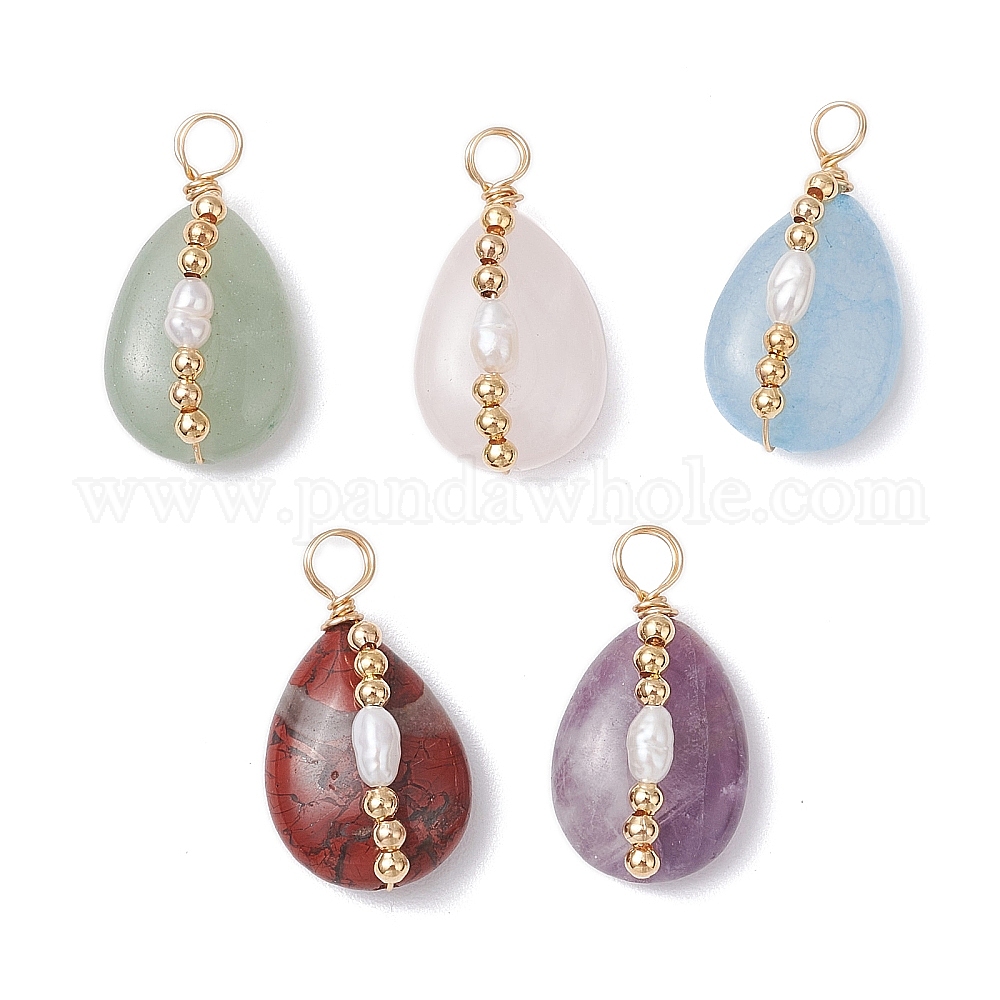 5шт. медная проволока, обернутая натуральным аметистом, брекчированных яшмы, зеленый авантюрин, розовый кварц, подвески для аквамарина, натуральные пресноводные жемчужные бусины в форме слезы, золотые