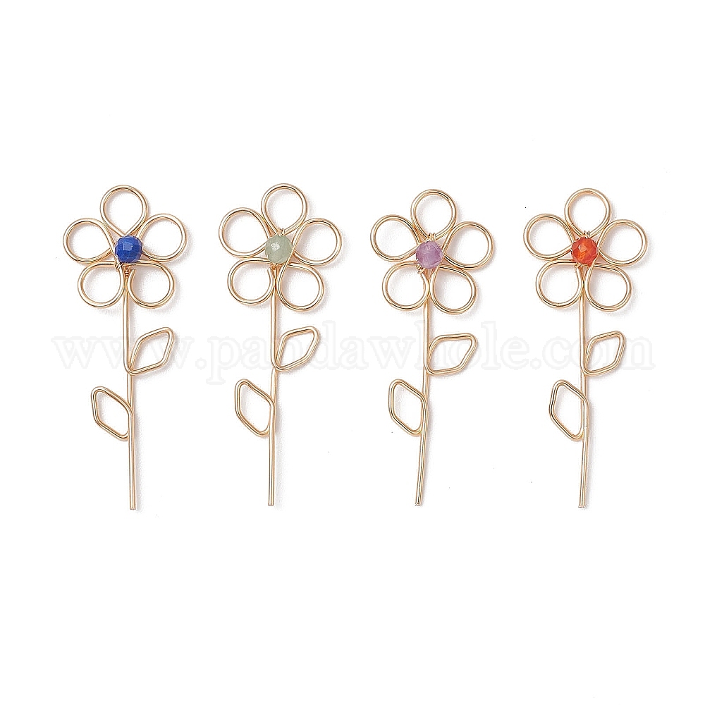 4 шт. 4 стили натуральный красный агат и лазурит и аметист и зеленый авантюрин граненые круглые бусины медная проволока обернутые в цветы подвески, золотые