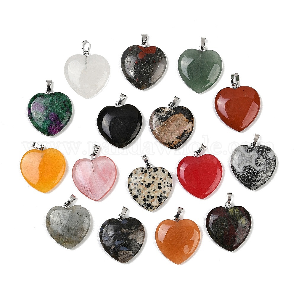 Природные и синтетические смешанные подвески драгоценных камней, подвески в форме сердца с 201 дужками из нержавеющей стали, цвет нержавеющей стали