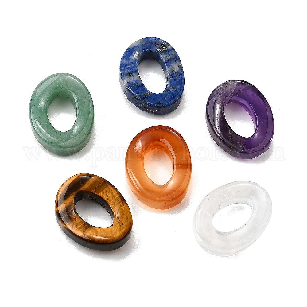 • Смешанные камни Природные каменные смешанные подвески, овальные амулеты, 23x18x6.5 мм, отверстие : 7.5x12.5 мм
