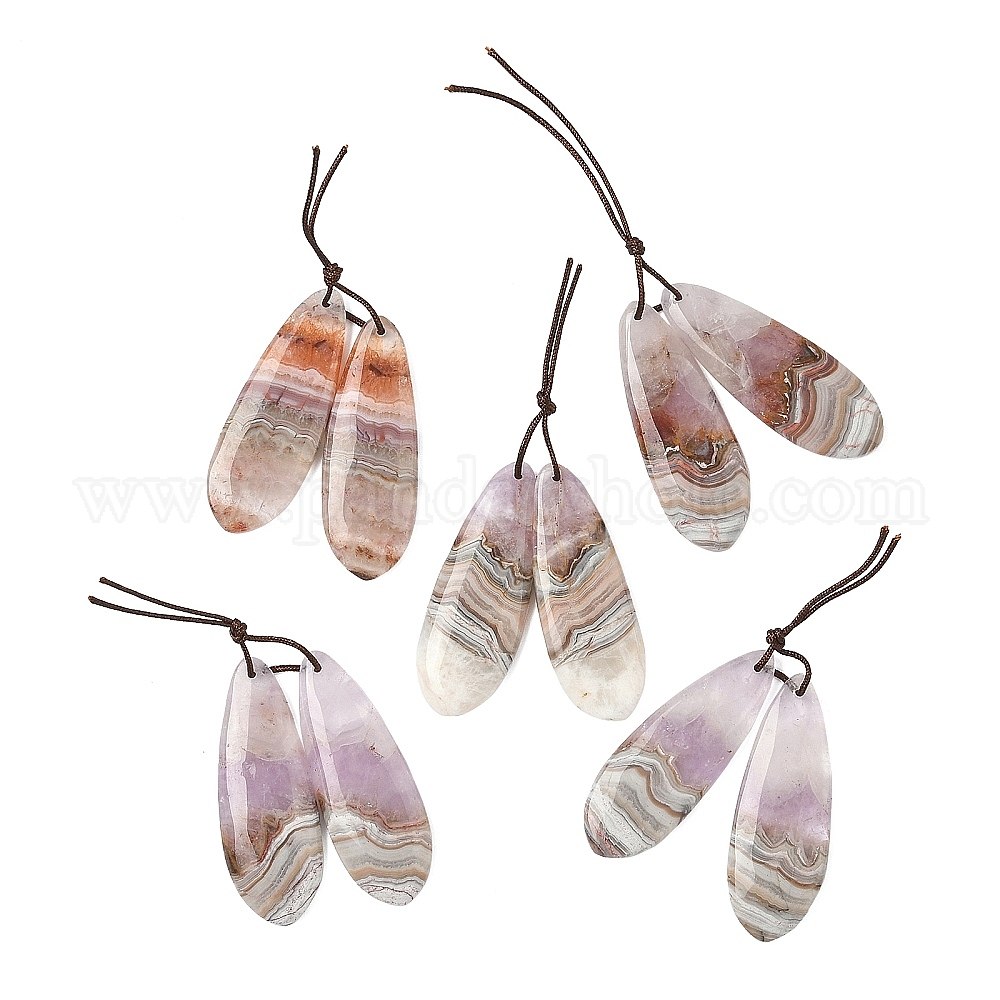 Подвески из натурального аметиста и кружевного агата, слезинки