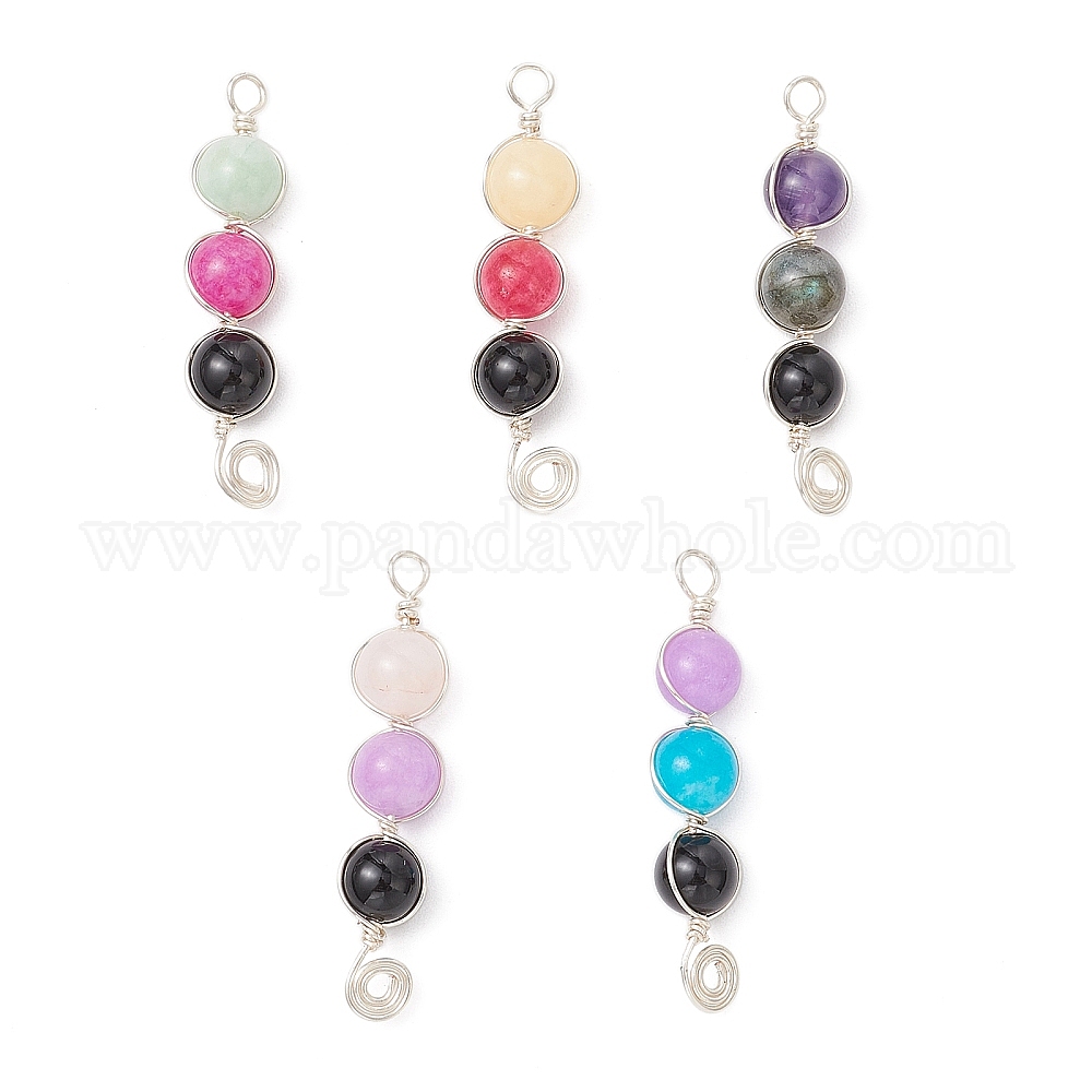 5 шт. 5 стили крашеный натуральный малайзийский нефрит и аметист и черный оникс (окрашенный и нагретый) и розовый кварц и лабрадорит круглые бусины подвески, подвески-талисманы из медной проволоки с вихревыми камнями, разноцветные