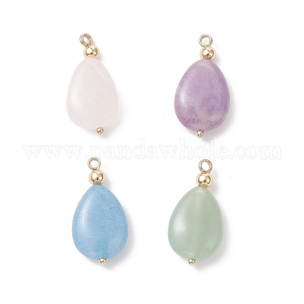 4 шт. 4 стили подвески-капли из натурального аметиста, розового кварца, зеленого авантюрина и окрашенного кварца с латунными дужками