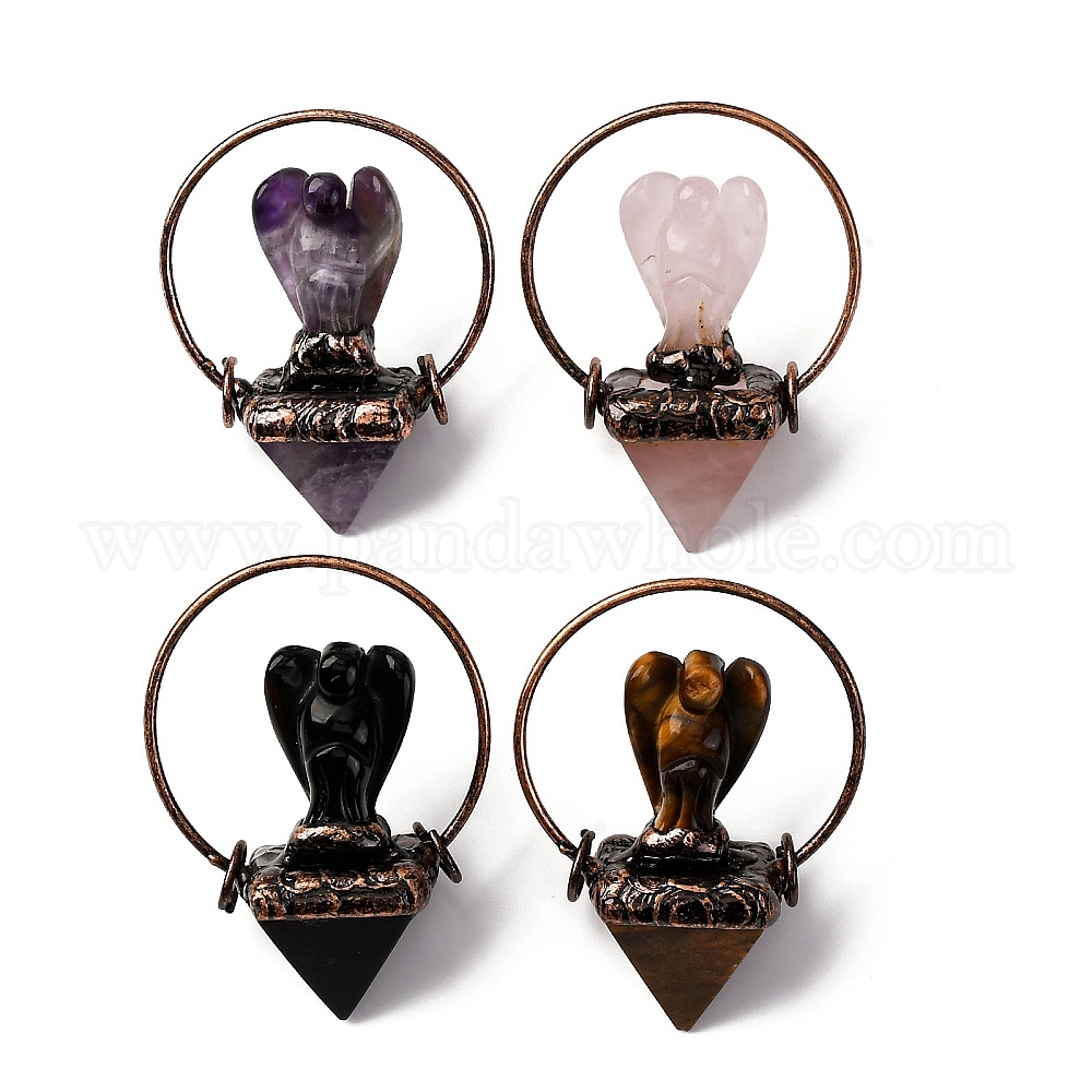 Подвески в виде пирамидального ангела из натурального драгоценного камня, с кольца прыжок из латуни, Красная медь