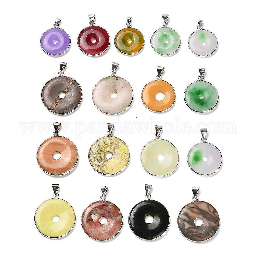 Природные смешанные подвески драгоценных камней, с латунной фурнитурой , подвески в виде пончиков/пи-дисков, платина, смешанные окрашенные и неокрашенные