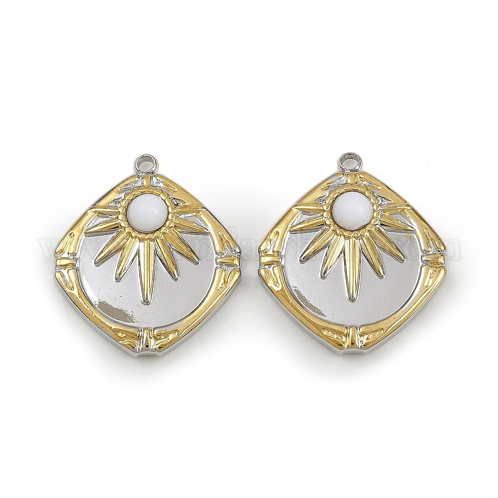 Натурального белого нефрита подвески, ромб с солнечными подвесками, с 304 установками из нержавеющей стали, ионное покрытие (ip)