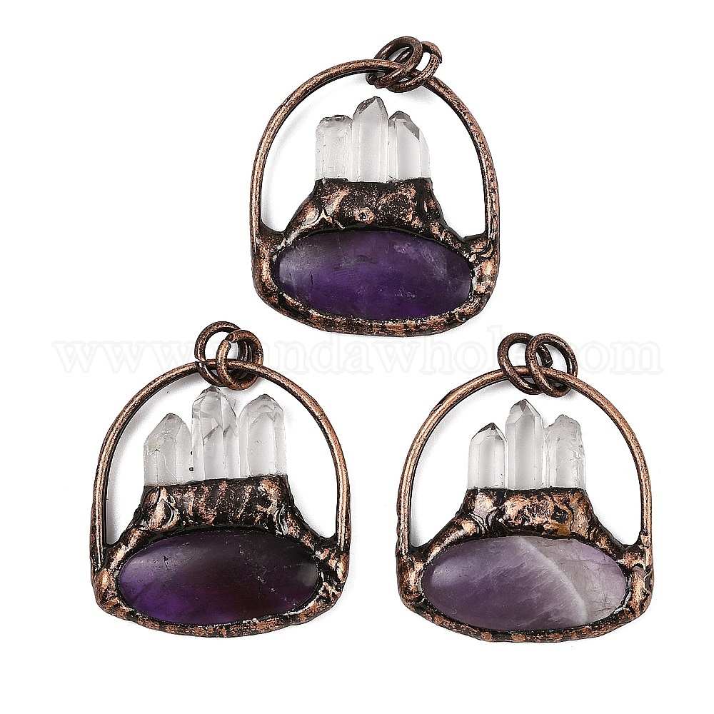 Подвески из натурального аметиста и кварца, подвески для сумок с латунной оправой