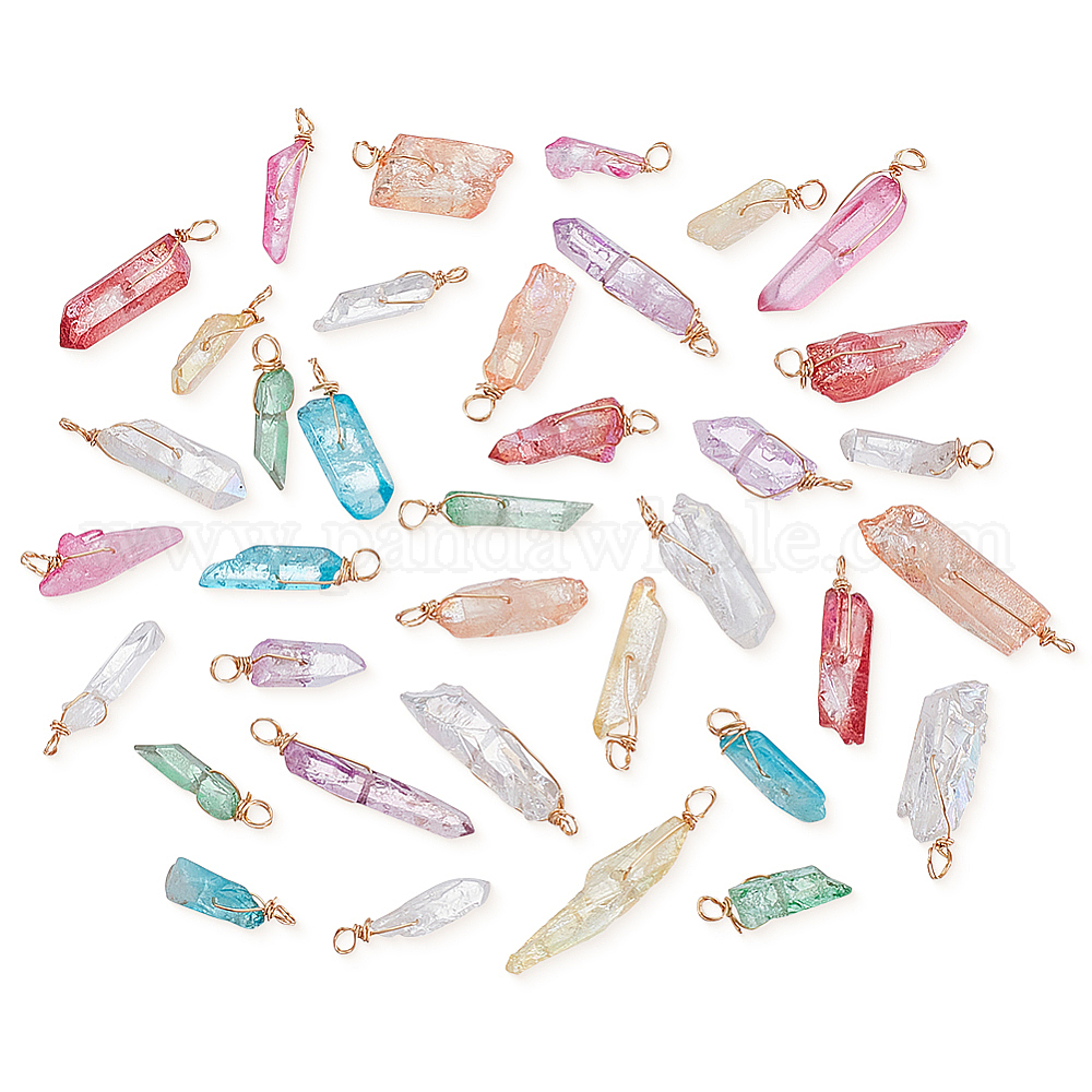 36 шт. 9 цвета подвески из натурального кварцевого кристалла, обвитого медной проволокой, самородки, золотые