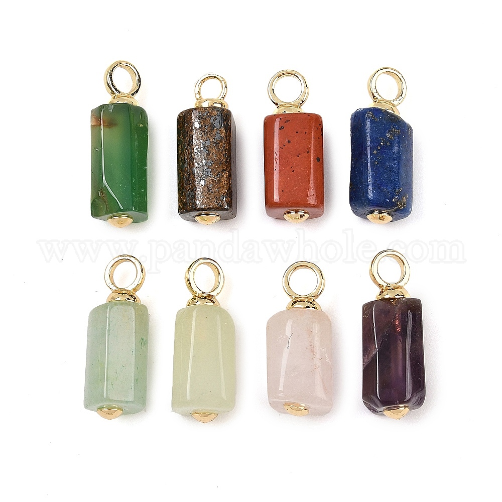 • Смешанные камни Прямоугольные подвески из натуральных смешанных камней, с латунной фурнитурой , реальный 18 k позолоченный, без кадмия и без свинца, стойки покрытие, долговечный, смешанные окрашенные и неокрашенные, 18~20x7~8x7~8 мм, отверстие : 3 мм