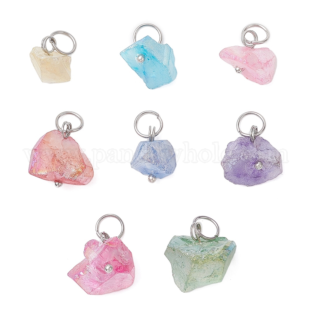 Гальванизированные натуральные кварцевые подвески, самородки прелести, с 304 кольцами из нержавеющей стали, разноцветные