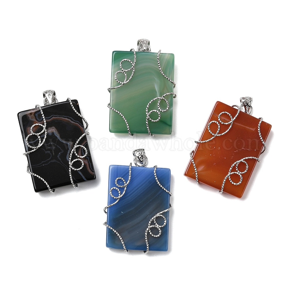 Природные подвески агат, окрашенная и подогревом, прямоугольные подвески с медной проволокой платинового тона