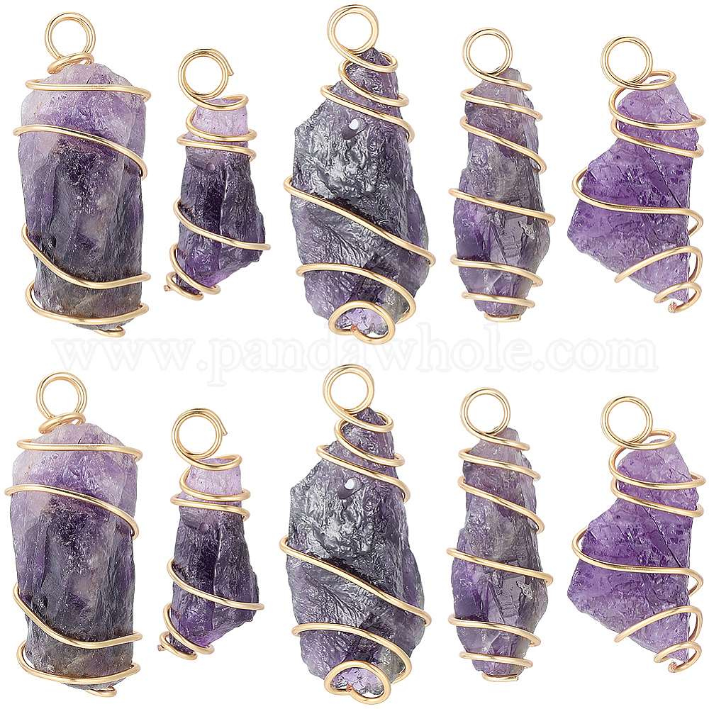 20Подвески из грубого натурального аметиста, с обмоткой из медной проволоки, самородки