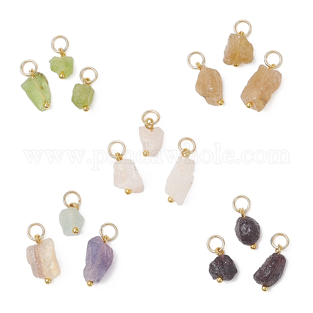 15 шт. 5 цвета необработанные натуральные флюорит, розовый кварц, желтый апатит, гранат и перидот, подвески-самородки, с 304 кольцами из нержавеющей стали