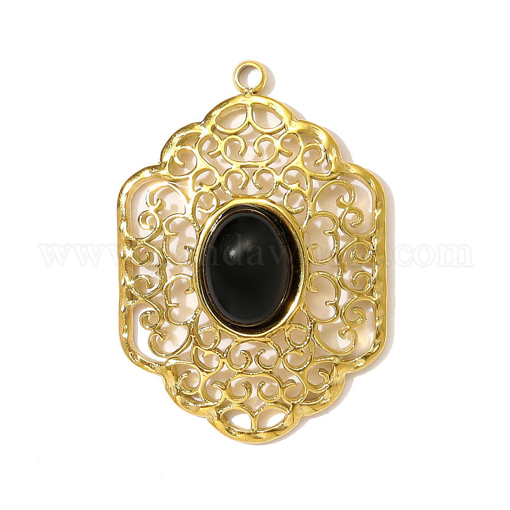 304 подвески из нержавеющей стали с синтетическим черным ониксом, шестиугольник, ионное покрытие (ip), реальный 18 k позолоченный