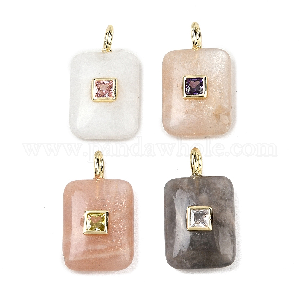 Естественно лунный подвески, прямоугольные подвески с золотистой латунной микропаве из кубических цирконий случайных цветов