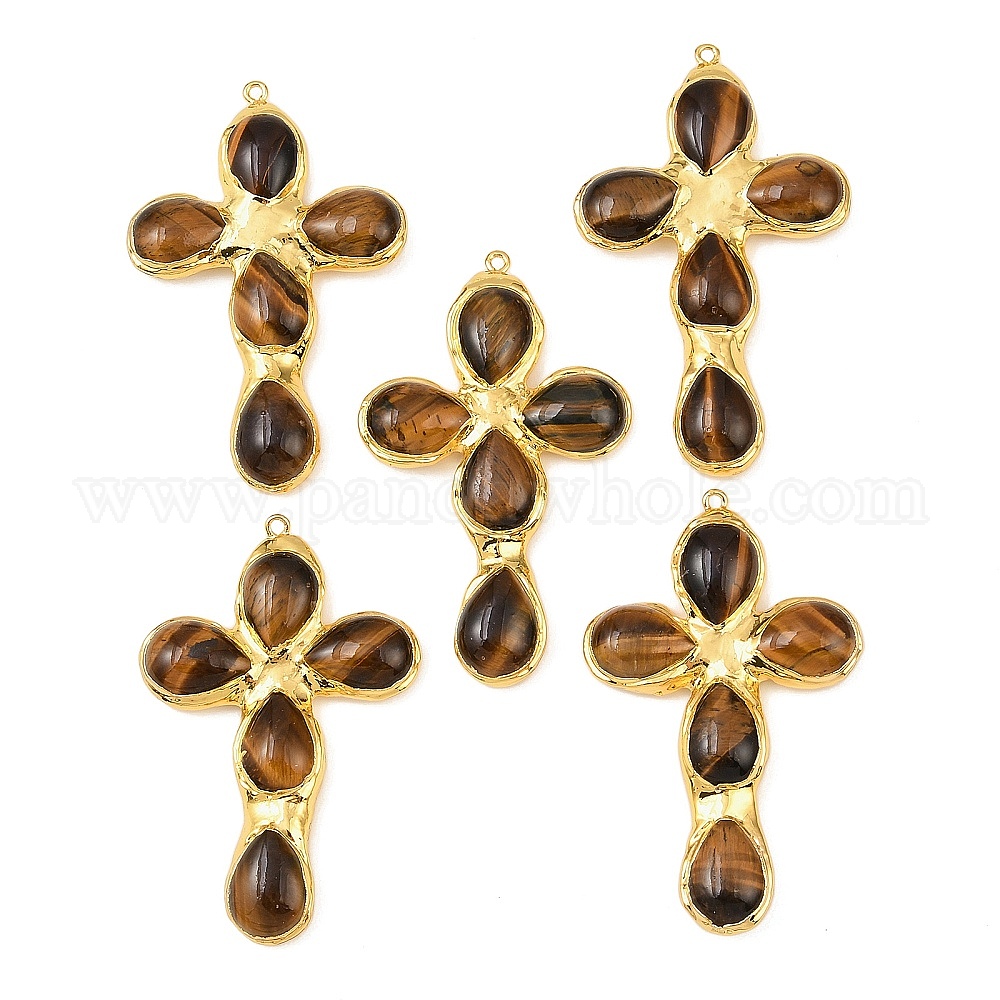 Естественно тигровый глаз большие кулоны, с латунной фурнитурой , крест прелести