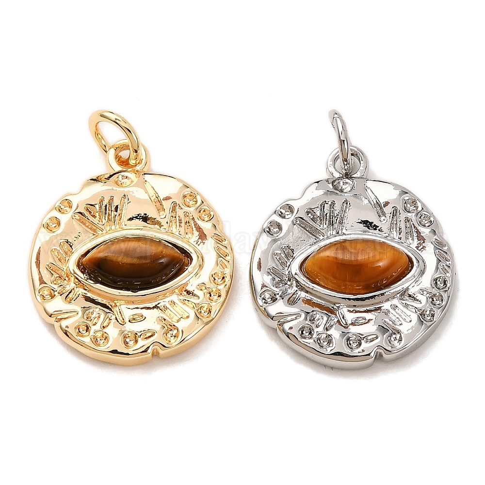 Подвески из латуни и натурального тигрового глаза, с целью перехода в кольце, стойки покрытие, долговечный, плоский круглый шарм