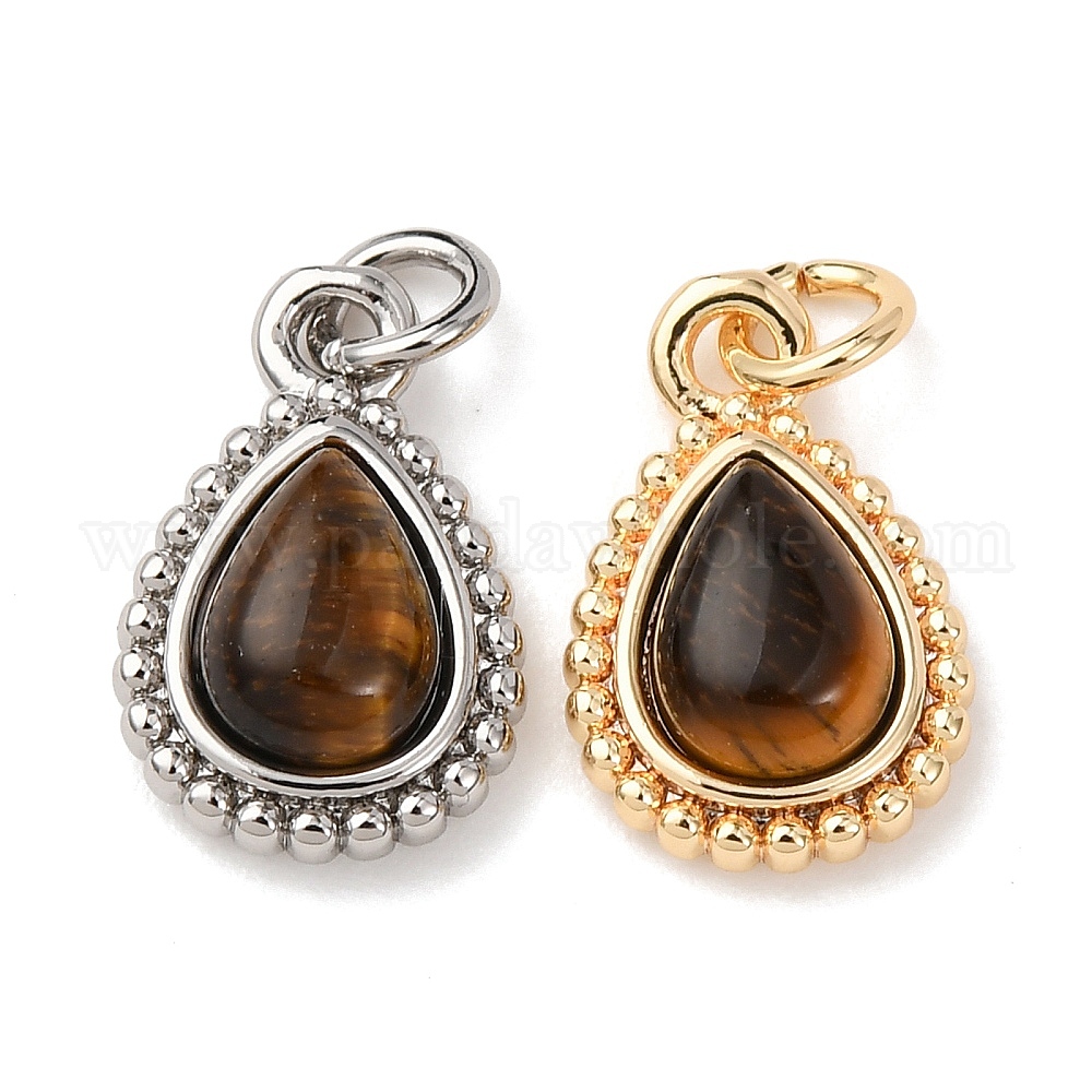 Природных тигровый глаз подвески, с соединительным кольцом и стойкой, покрытая латунью фурнитура, долговечный, очарование слезы (037ZYW)