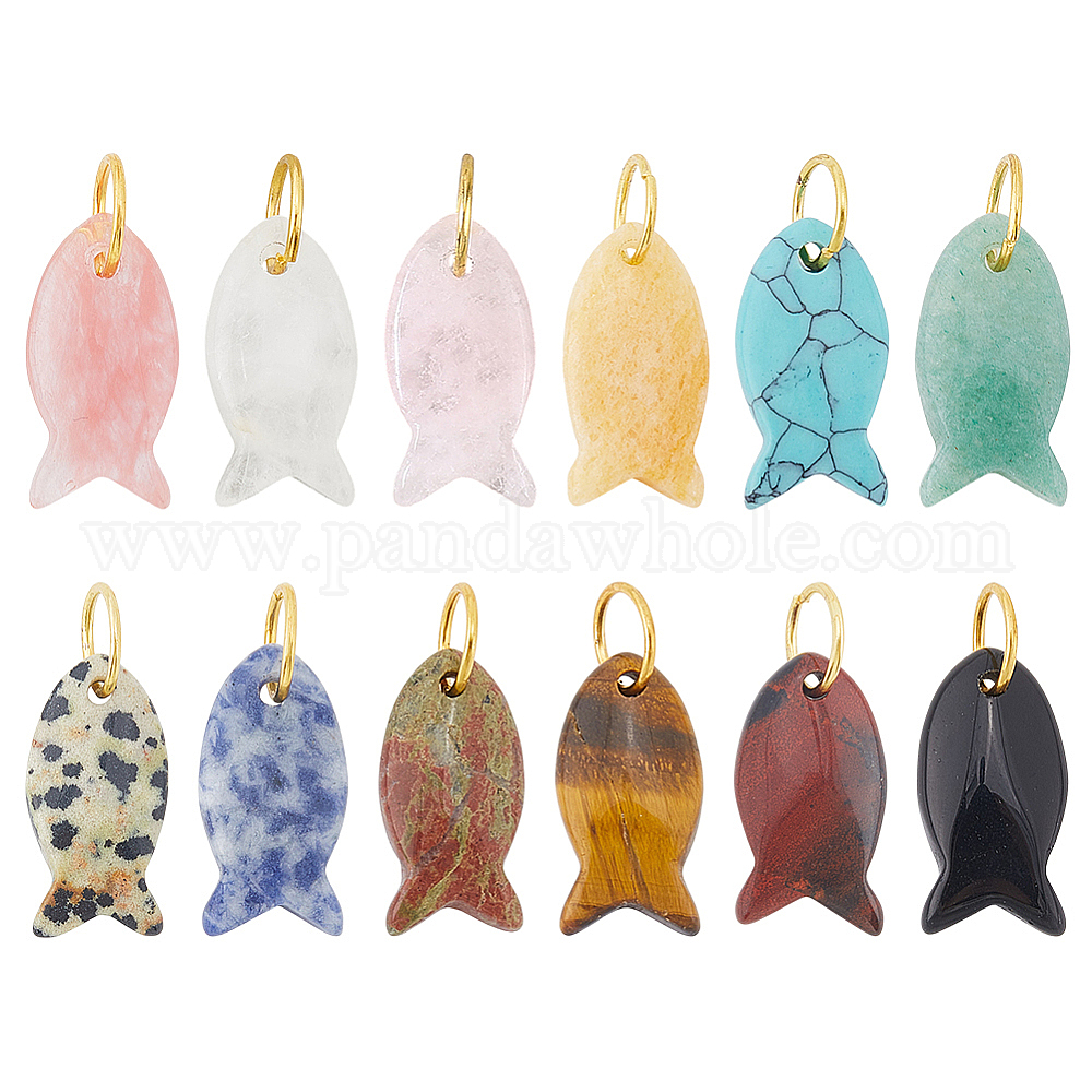 12 кулоны из натуральных и синтетических драгоценных камней, с кольца прыжок из латуни, золотые