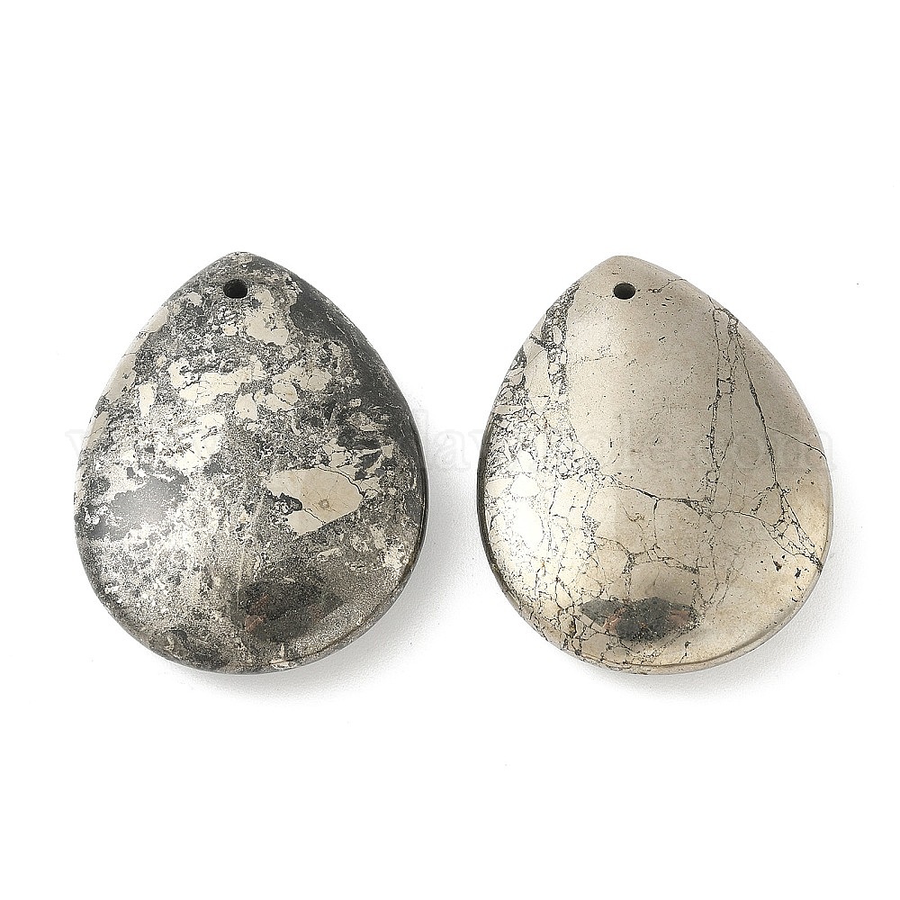 • Пирит Подвески из натурального пирита в форме капли, 45.5x35.5x11 мм, отверстие : 1.8 мм