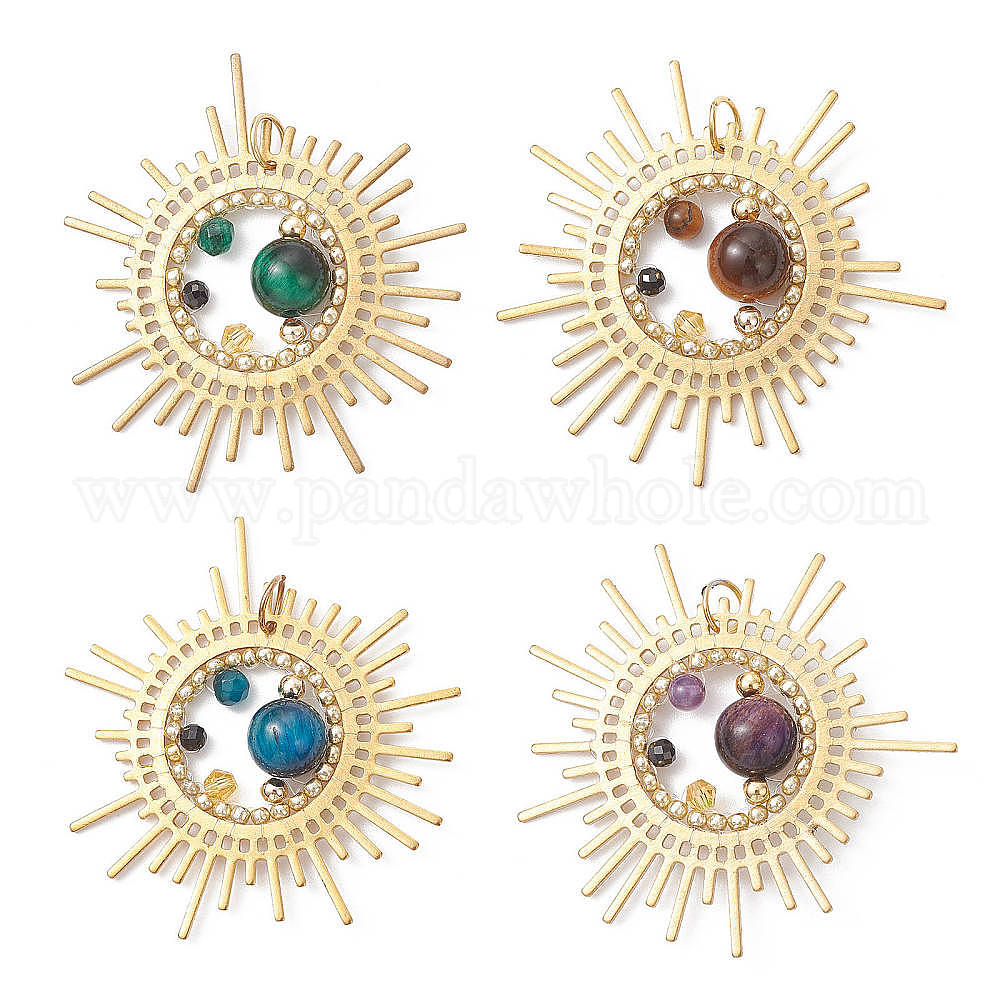 Подвески из натурального тигрового глаза и агата, солнечные подвески со стеклянными бусинами и латунной фурнитурой, золотые