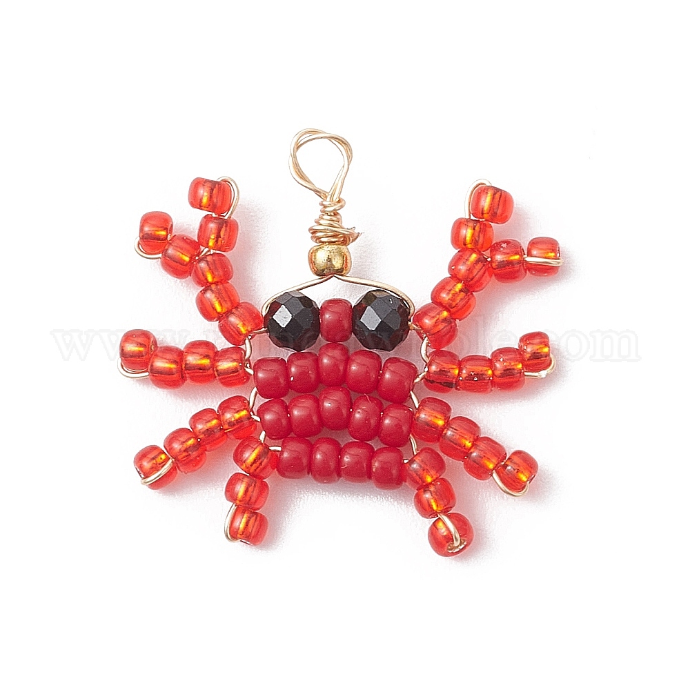 Подвески в виде морских животных из натуральной черной шпинели, обернутой медной проволокой и украшенной стеклянными бусинами, крабовые прелести, красные
