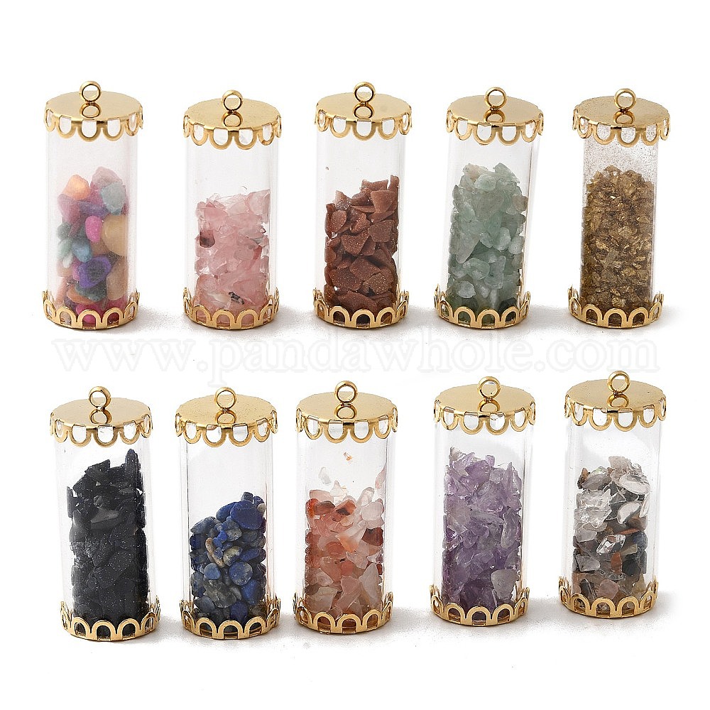 Стеклянная трубка с бусинами из драгоценных камней внутри подвесок, колонка прелести, с 304 крышками из нержавеющей стали, золотые