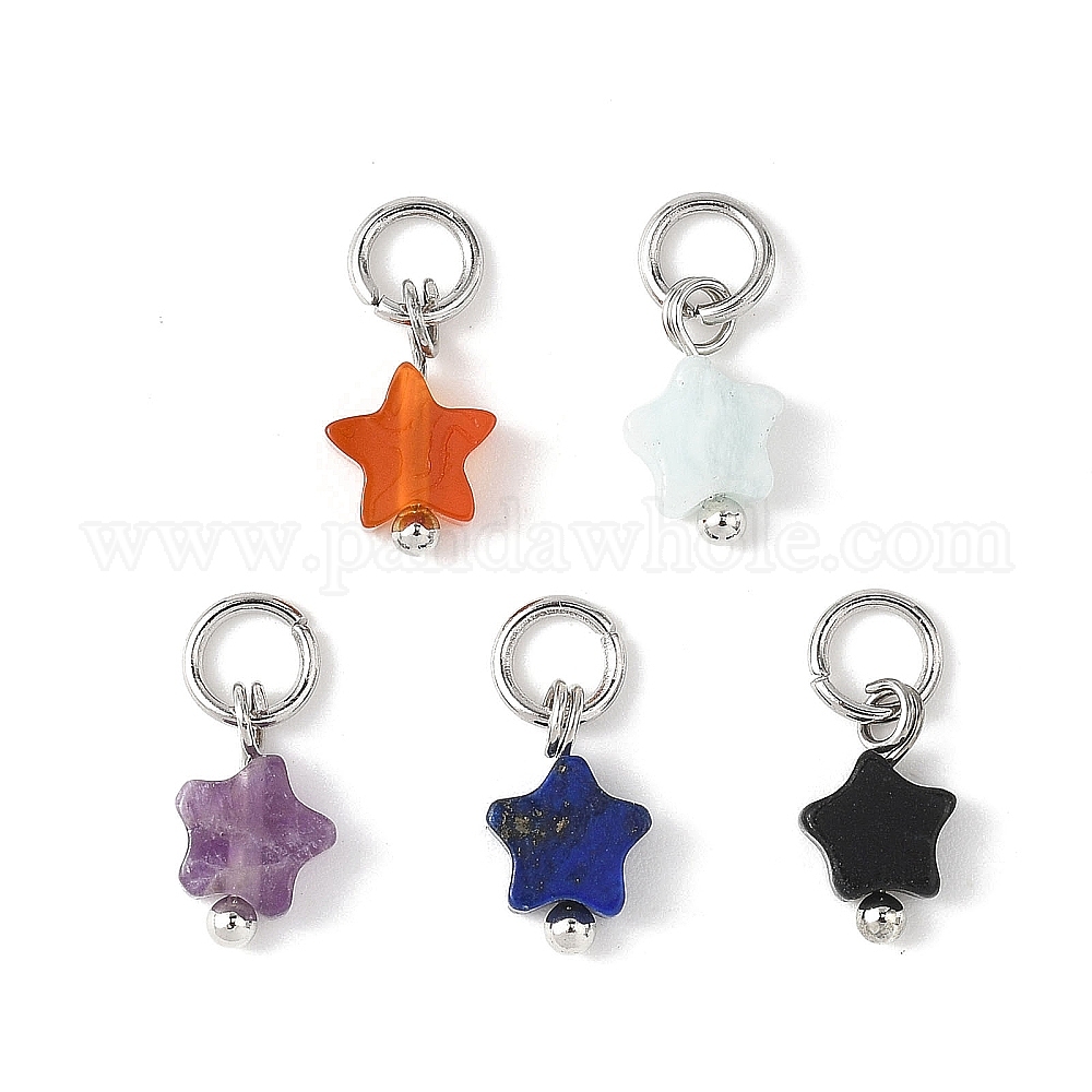 Подвески-звезды из натурального лазурита, сердолика, амазонита, черного камня и аметиста, с латунной фурнитурой , платина, смешанные окрашенные и неокрашенные
