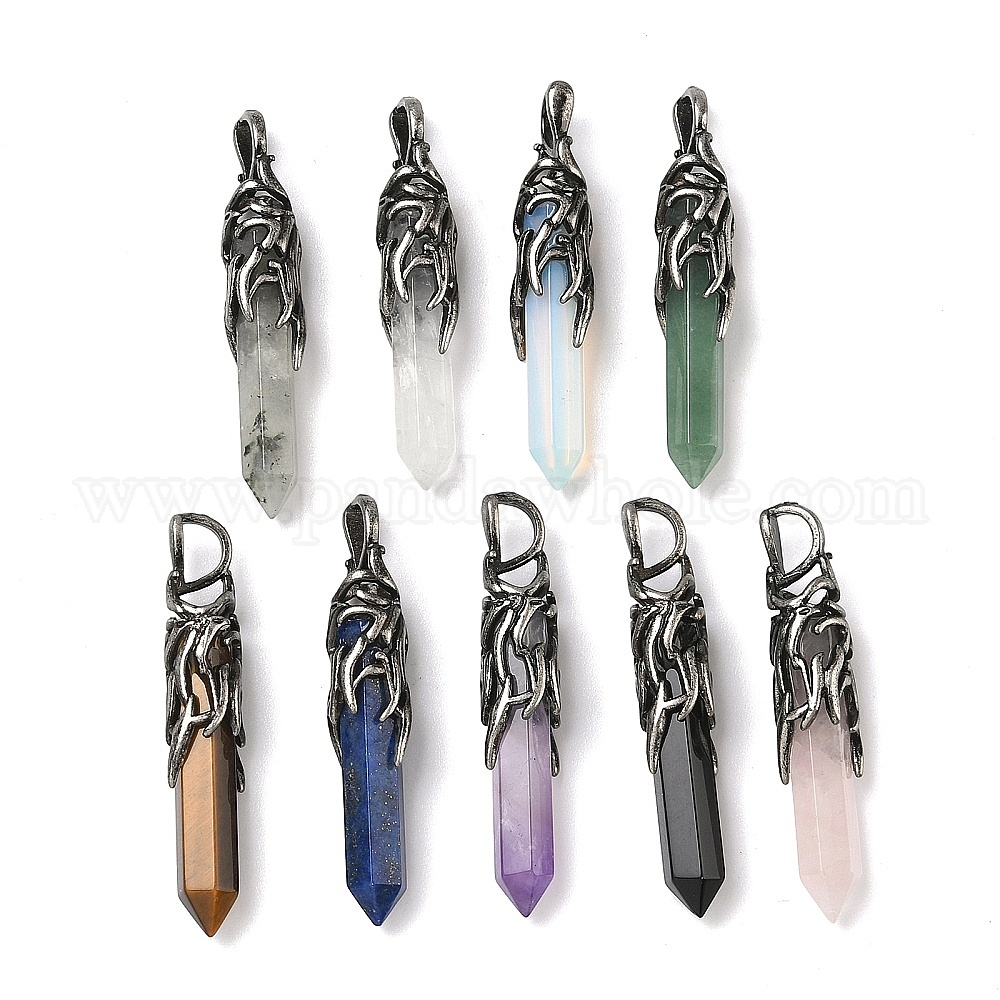 Подвеска из натурального камня, граненые подвески-пули с латунными крыльями дракона, античное серебро