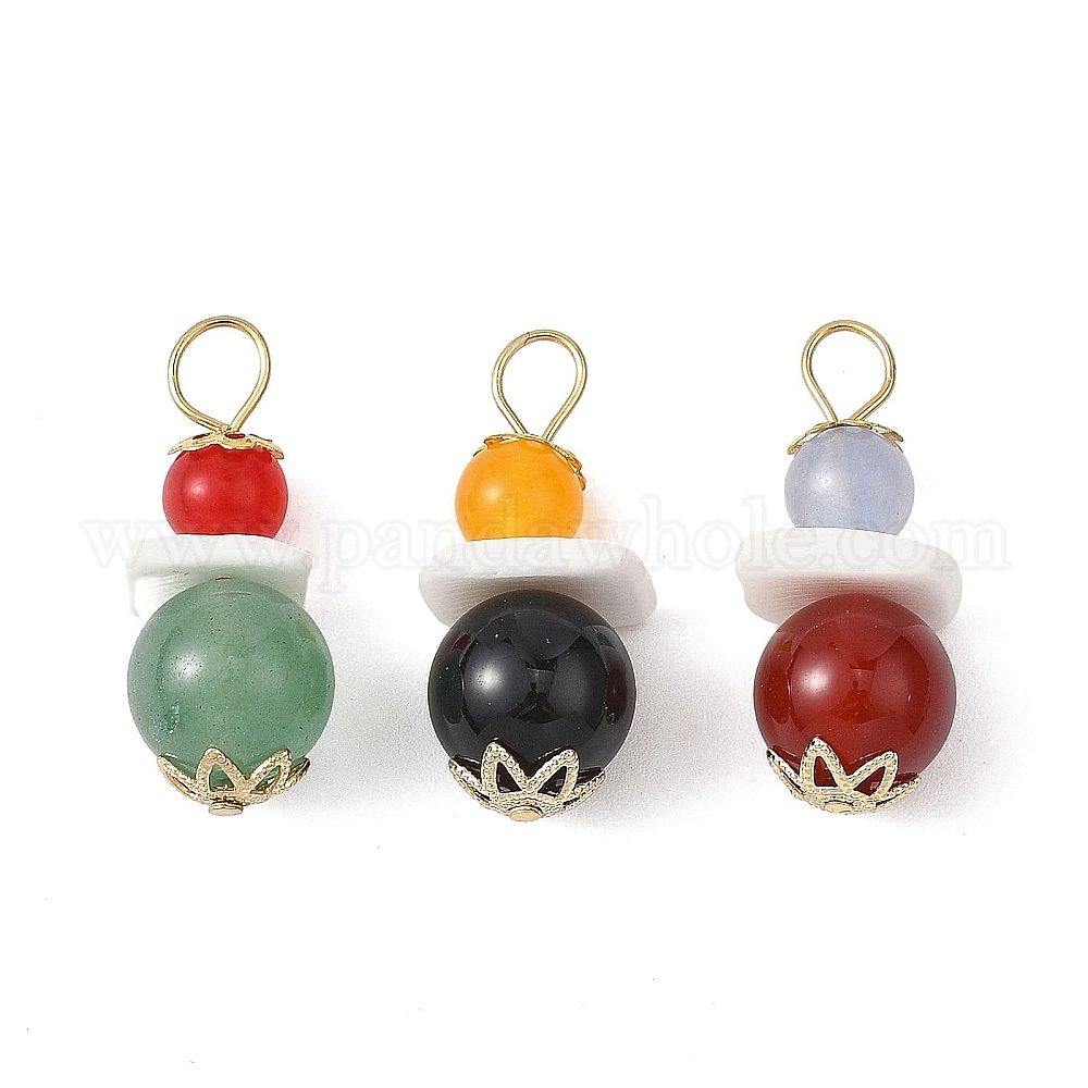 • Золотой 3 шт. 3 стили подвески из натурального зеленого авантюрина, черного оникса, белого нефрита и малайзийского нефрита, круглые подвески из бусин с натуральными ракушками и 304 петлями из нержавеющей стали, золотые, 25~26x10x10~15 мм, отверстие : 3.5~3.9 мм, 1 шт / стиль