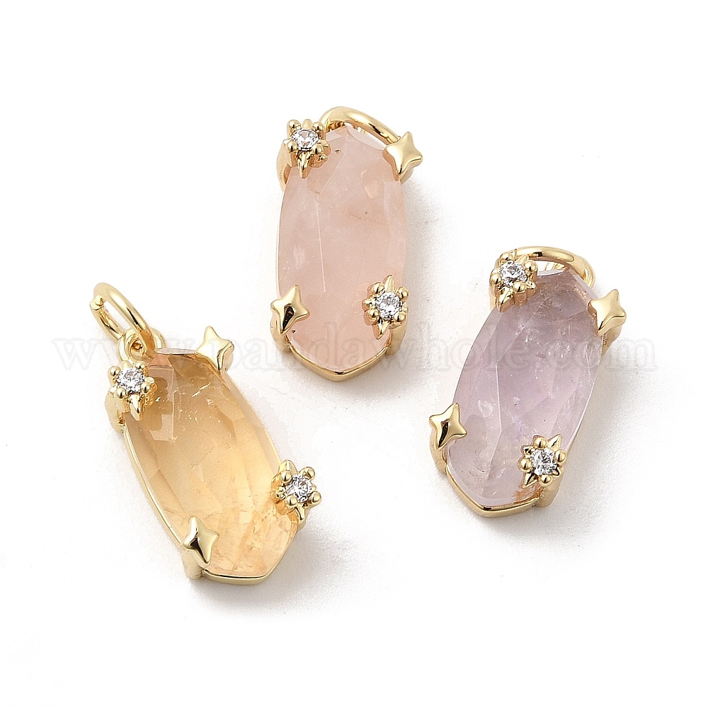 • Смешанные камни Граненые кулоны из натурального камня, Овальные подвески с латунными микропаве из прозрачных кубических цирконий и соединительными кольцами, реальный 18 k позолоченный, без кадмия и без свинца, стойки покрытие, долговечный, 16~16.5x7.5~8x7~7.5 мм, отверстие : 3.5 мм