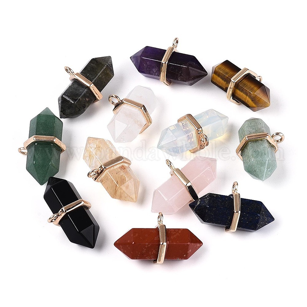 Двойные остроконечные подвески с драгоценными камнями, граненые подвески в форме пули с фурнитурой из сплава, золотые