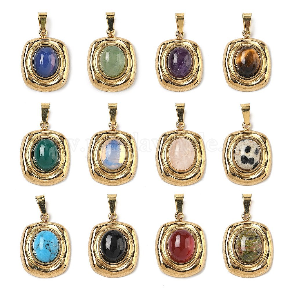 Драгоценный камень подвески, прямоугольные подвески с 304 оправами из нержавеющей стали, золотые, ионное покрытие (ip)