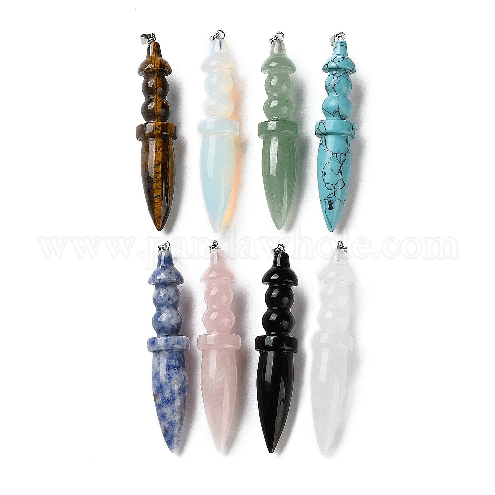 Натуральный и синтетический драгоценный камень большие подвески, подвески в форме меча с застежками-кнопками из нержавеющей стали, цвет нержавеющей стали