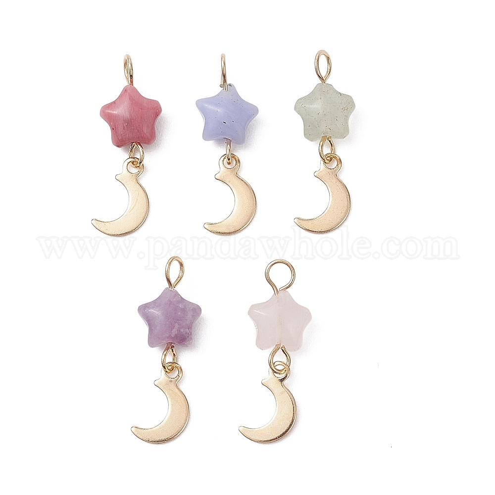 Подвески в форме звезд из синтетического голубого кружевного агата, натурального розового кварца, родонита, зеленого авантюрина и лепидолита, 201 из нержавеющей стали амулеты луна, золотые