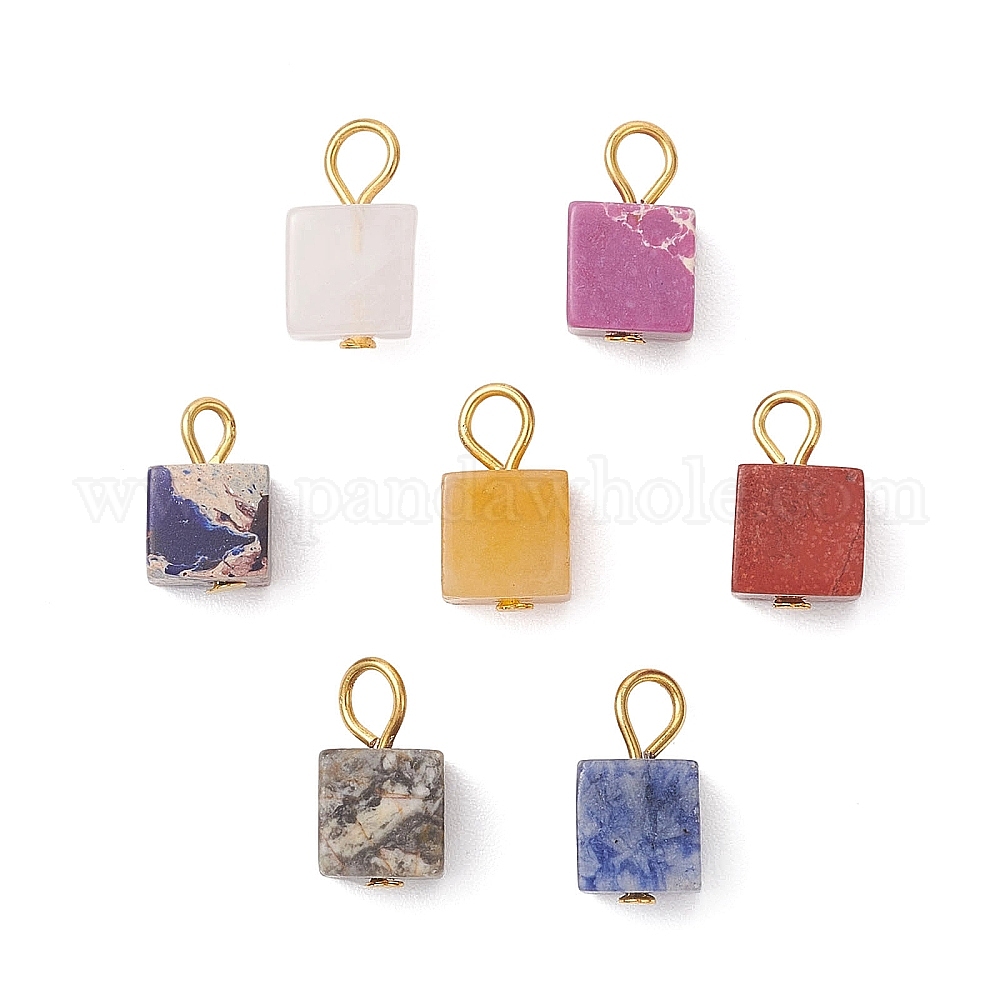 Подвески из окрашенной синтетической императорской яшмы, натурального картографического камня, голубой пятнистой яшмы, красной яшмы и топазового нефрита, кубические подвески с железными петлями, золотые, разноцветные