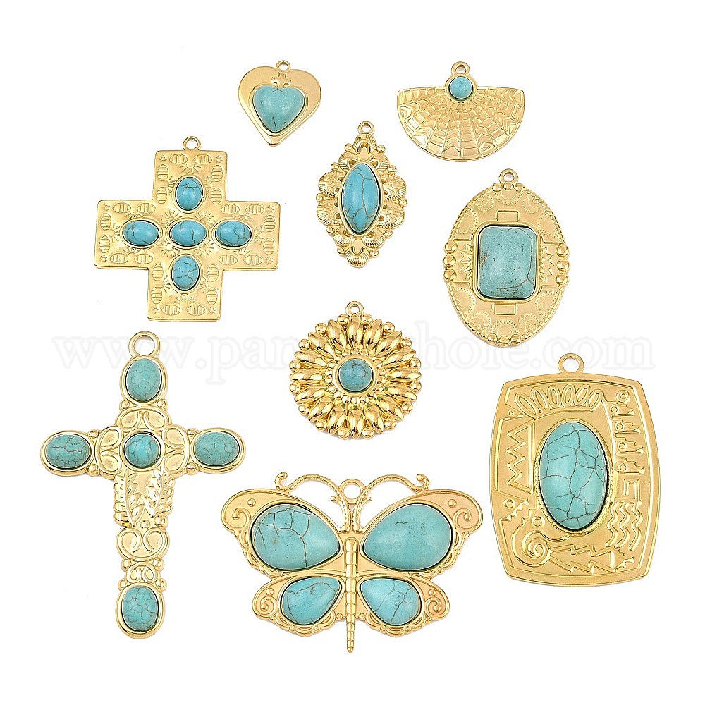 Богемный стиль 304 нержавеющая сталь с подвесками из синтетической бирюзы, овальный крест-сердце бабочка, золотые